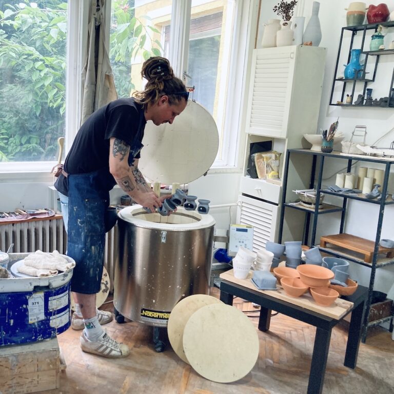 Égetés (zsengélés és mázas égetés) alacsony- és magas tűzig – a kemencénk magas tűzre is alkalmas 1200 C°-ig.