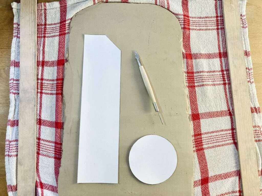 - Vágd körbe késsel (Itt figyelj arra, hogy ha nem raksz az asztalra, az agyag alá valamit, akkor könnyedén belekarcolod abba is a mintát!)